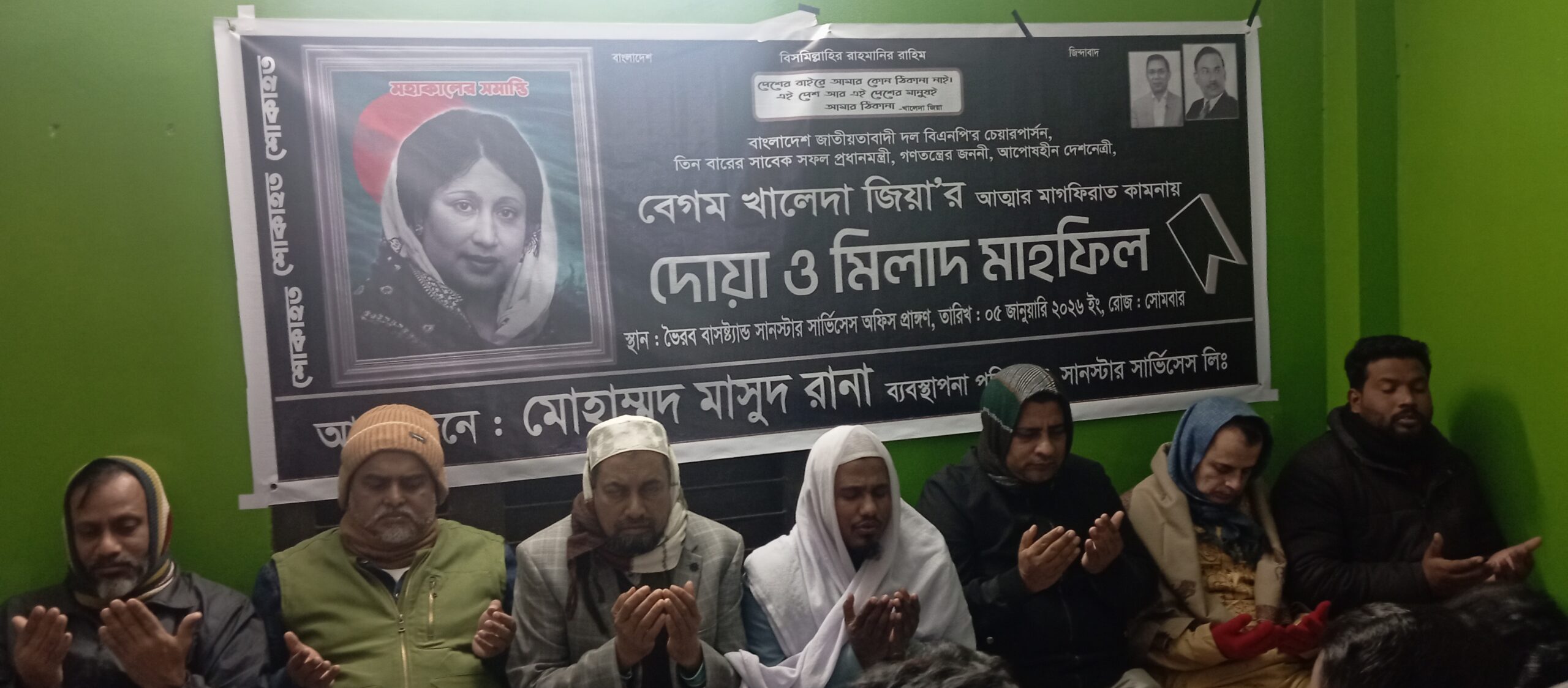 সোমবার (৫ জানুয়ারি ২০২৬) ভৈরব বাসস্ট্যান্ড সংলগ্ন সানস্টার সার্ভিসেস লিমিটেডের অফিস প্রাঙ্গণে এই দোয়া ও মিলাদ মাহফিলের আয়োজন করা হয়।