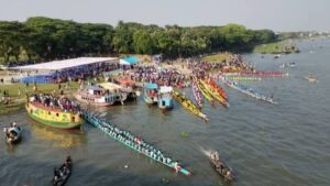 আজ শনিবার (২৫ অক্টোবর ) নরসিংদীর মেঘনা নদীতে এক আকর্ষনীয় তারুণ্যের উৎসব-২০২৫ নৌকা বাইচ প্রতিযোগিতা অনুষ্ঠিত হয়েছে। নরসিংদী জেলা প্রশাসনের আয়োজনে নরসিংদী জেলা পরিষদ, নরসিংদী চেম্বার অব কমার্স এন্ড ইন্ডাস্ট্রি, নরসিংদী পৌরসভা, উপজেলা প্রশাসনের সহযোগিতায় এ নৌকা বাইচ প্রতিযোগিতায় নরসিংদী-কিশোরগঞ্জ, ব্রাহ্মণবাড়িয়া-নারায়ণগঞ্জ এবং হবিগঞ্জ জেলাসহ বিভিন্ন স্থান থেকে মোট ১২টি নৌ দল অংশ গ্রহন করে। এ নৌকা প্রতিযোগিতায় ব্রাহ্মণবাড়িয়া জেলার সরাইল উপজেলার মোহাম্মদ উসমান মোল্লার নৌদল চ্যাম্পিয়নশীপ এবং হবিগঞ্জ জেলার টঙ্গীঘাট উপজেলার কালা মিয়ার নৌদল রানার্সআপ এর গৌরব অর্জন করে।