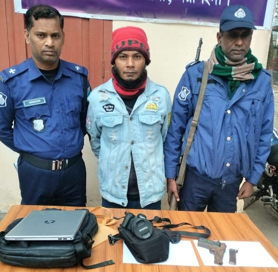 জানা যায় ,শিবপুর মডেল থানার মামলা নাম্বার ১(১১)২৪ ধারা ৩৯৫/ ৩৯৭ পেনাল কোড ডাকাত সর্দার আজিজুর রহমান ওরফে আজি বৈরাগী (৩২) শিবপুর সৃষ্টিগড় গ্রামের জয়নাল আবেদীন বৈরাগীর ছেলে। আজী বৈরাগী কে সৃষ্টঘর এলাকা থেকে আজ ২১ ডিসেম্বর ( শনিবার) রাত ১ঃ৩৫ মিনিটে শিবপুর মডেল থানার অফিসার ইনচার্জ আফজাল হোসাইনের নেতৃত্বে,তদন্তকারী কর্মকর্তা সঙ্গীয় ফোর্স সহ অভিযান পরিচালনা করে গ্রেফতার করেন। তার দেয়া তথ্য সনাক্ত মতে তার নিজ বাড়ি থেকে উল্লেখিত মামলায় লুন্ঠিত ল্যাপটপ ও ক্যামেরা উদ্ধার করা হয় । তার আস্তানা তার টং দোকানের দক্ষিণ পূর্ব কোণের অত্যন্ত সুরক্ষিত স্থান হইতে একটি বিদেশী ৭.৬৫ পিস্তল ম্যাগাজিন সহ উদ্ধার করা হয় । তার নামে ইতিপূর্বে একাধিক ডাকাতি, খুনসহ এবংপ্রকাশ্যে মার্ডার করার জনশ্রুতি আছে । কিন্তু প্রাননাশের ভয়ে তার বিরুদ্ধে কেহই মামলা করার সাহস পায়না। অত্র উদ্ধার সংক্রান্তে মামলা প্রক্রিয়াধীন।